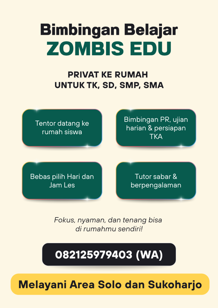 Saat ini, Zombis Education memang fokus dalam memberikan layanan les privat khusus persiapan TKA Matematika di Sukoharjo dan Solo.